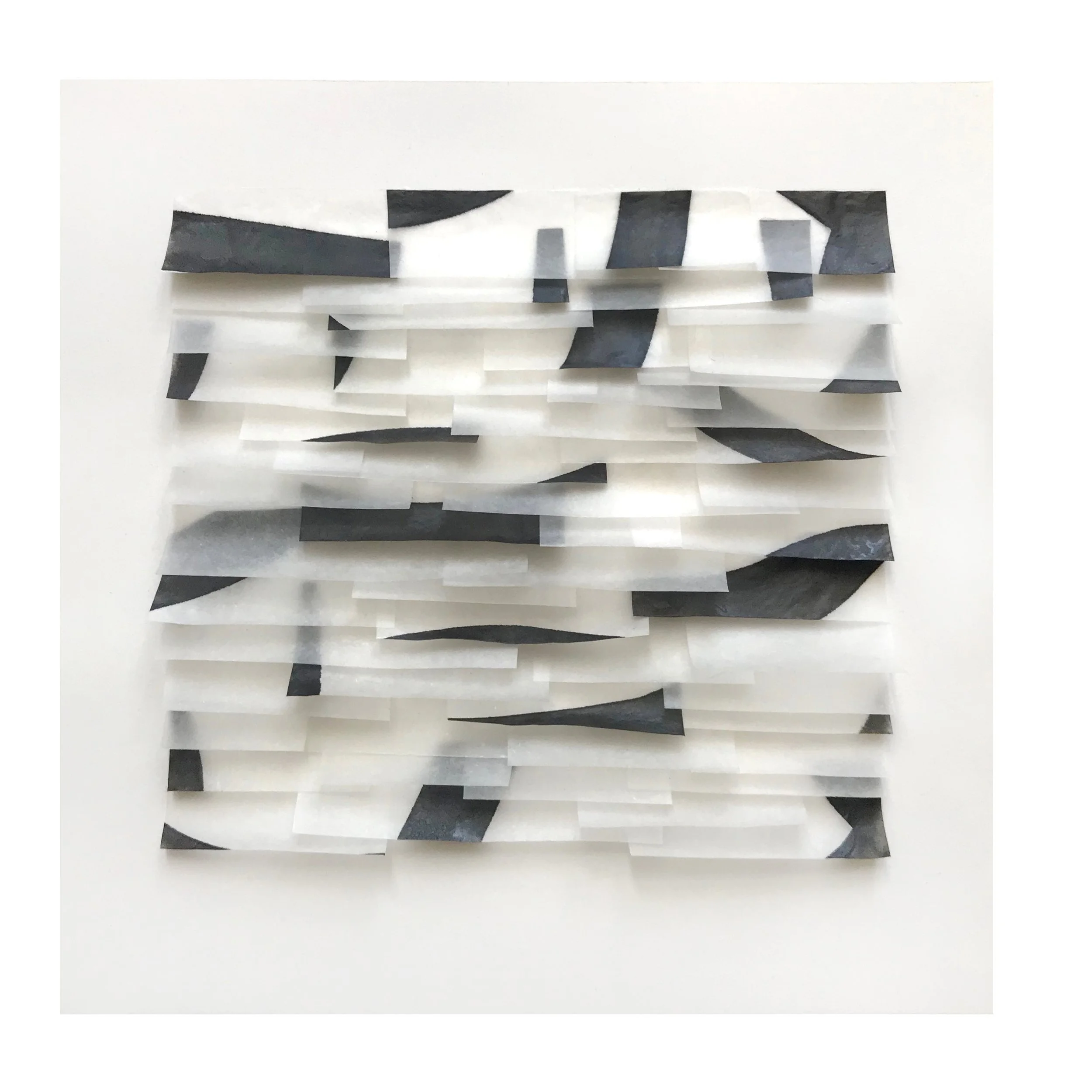 Mulberry Paper, India Ink, Wax on paper, 2020. In metal shadowbox photo frame.
